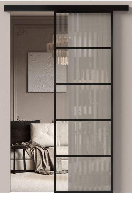 Межкомнатная дверь МКП-4 Раздвижная Одностворчатая, на каркасе Алюминий, со стеклом, цвет — Черная эмаль (RAL 9004)